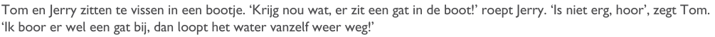 In een mopje van Tom en Jerry zit een gat in hun boot.