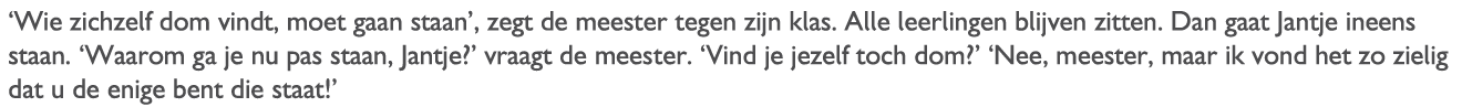 In één van de mopjes uit het moppenboek gaat Jantje staan.