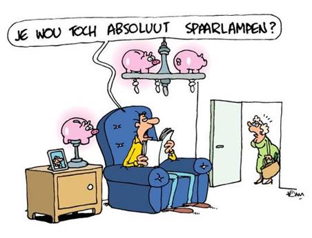 Hij probeert te besparen op [input_1110:10---spaarlampen]