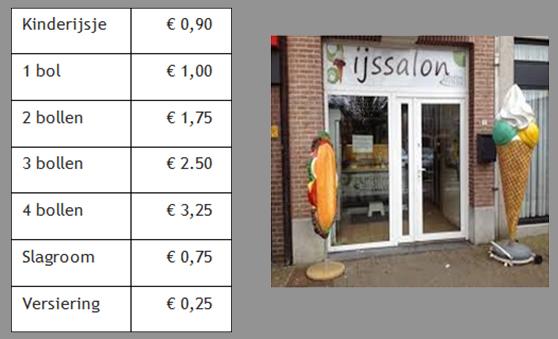 Hoeveel kost een ijsje met 3 bollen en met slagroom?