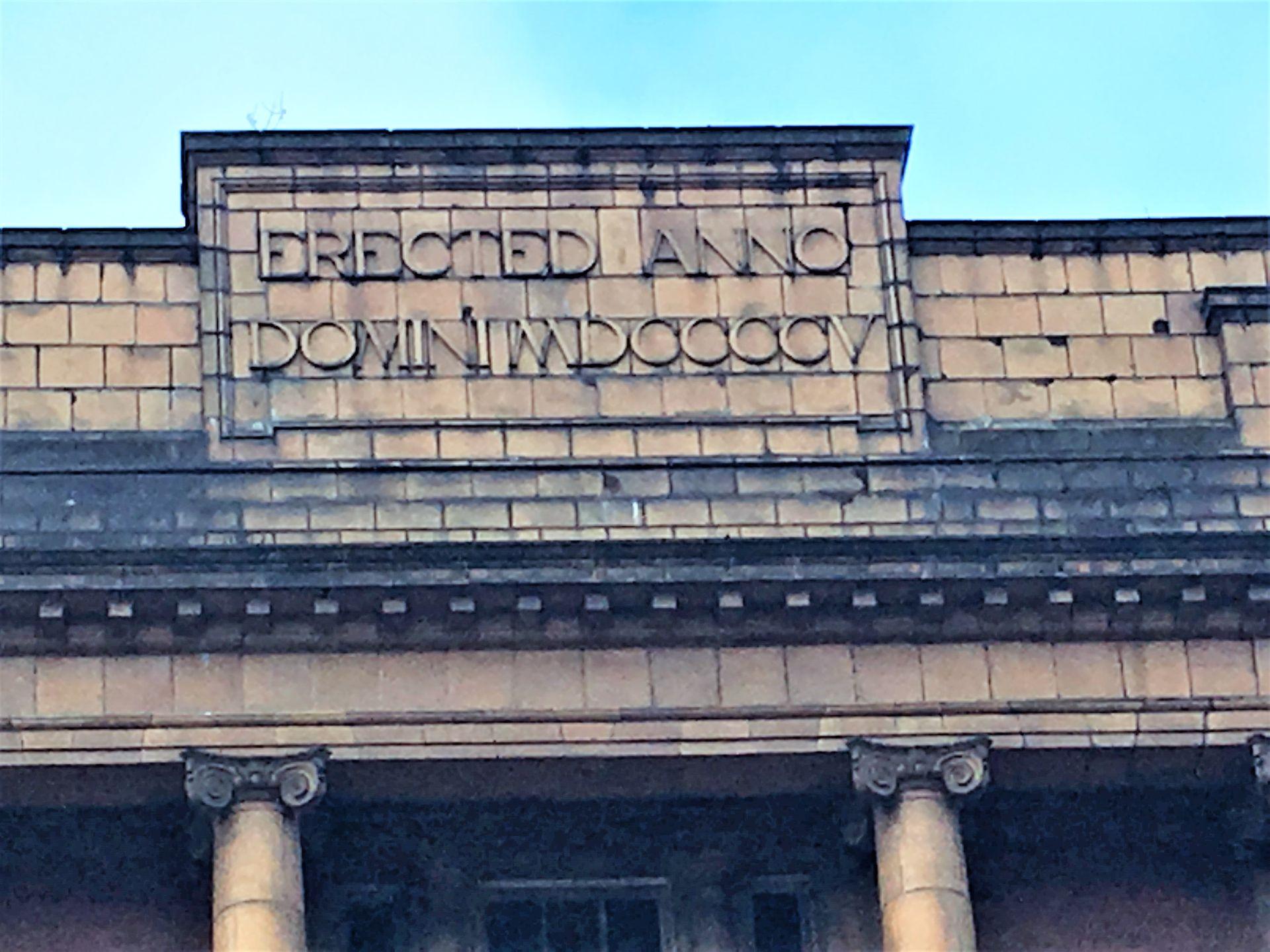 Op dit gebouw staat in het Latijn dat het gebouwd is in 1905.