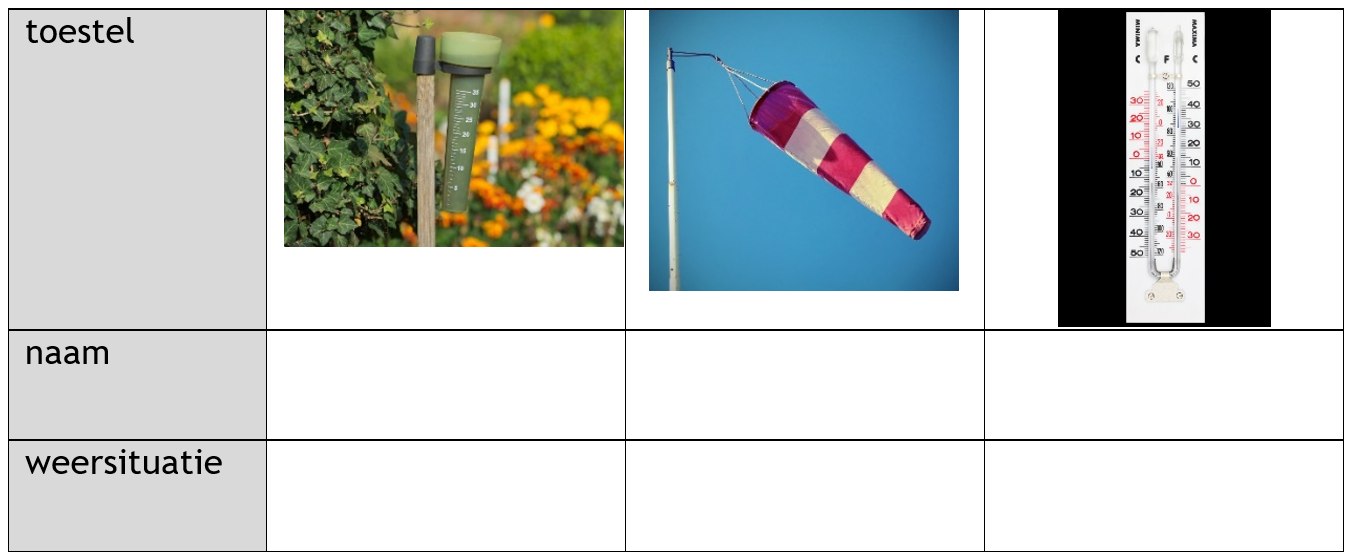 Verschillende toestellen worden gebruikt om een weerwaarneming te doen.