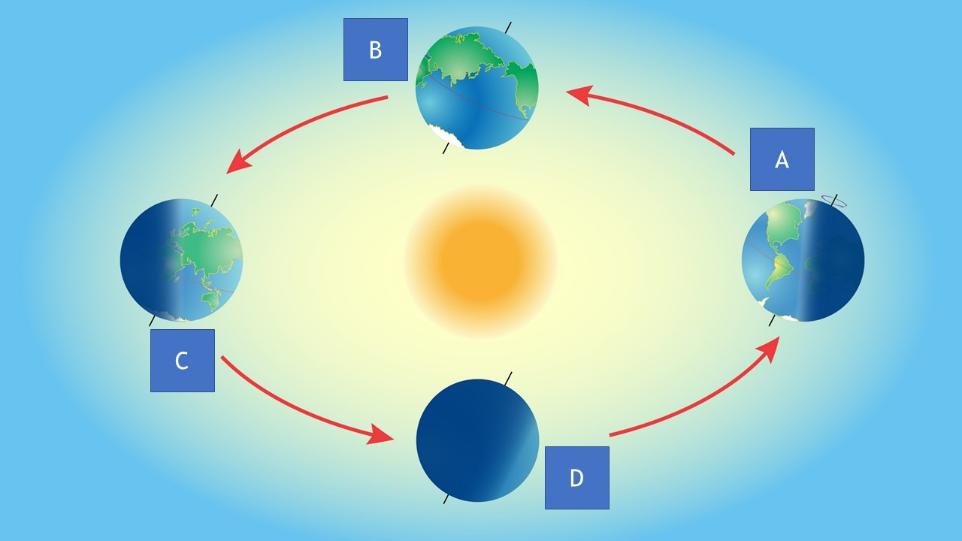 De aarde hangt een beetje scheef. Dit heeft een invloed op onze seizoenen.