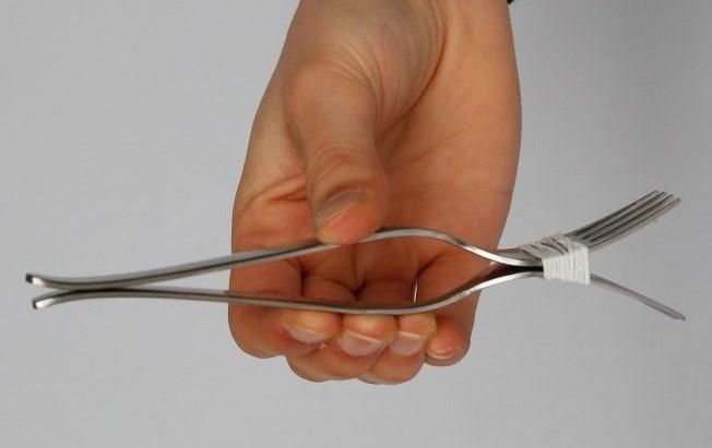 Lies maakte met twee vorken en een elastiek dit gebruiksvoorwerp.