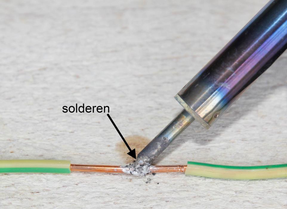 - Hij soldeert ze vast met soldeersel en soldeerbout. (foto 2)