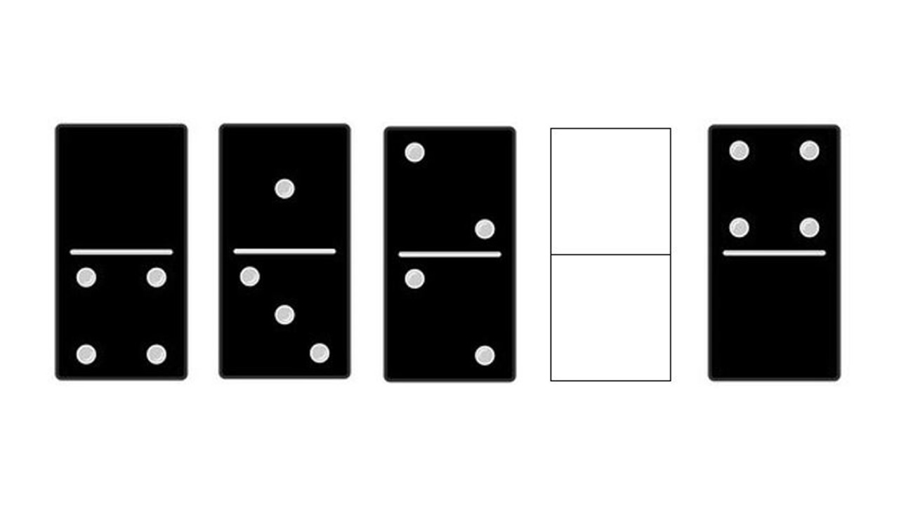 Op de tafel liggen vier dominostenen volgens een bepaald patroon.
